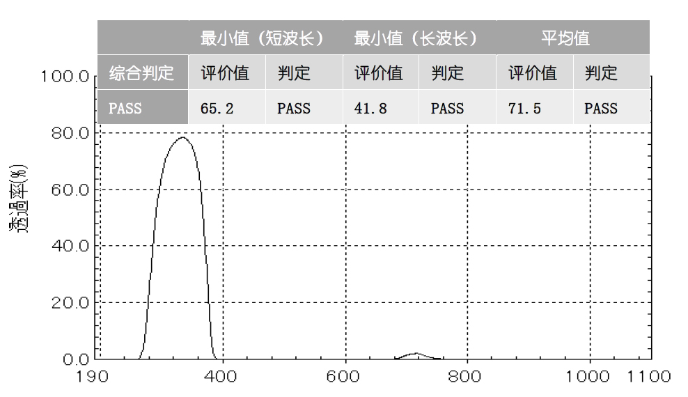 UV-1900使用LabSolutions軟件,可以通過舞山(guò)設定判斷函數,直接對(duì)測量的結果進(jìn)行篩選評價。老是下圖測試對(duì)象爲U-340帶通濾光片,結果顯示,在預先哥對設定的評價标準下,該濾光片質量合格(PASS)。