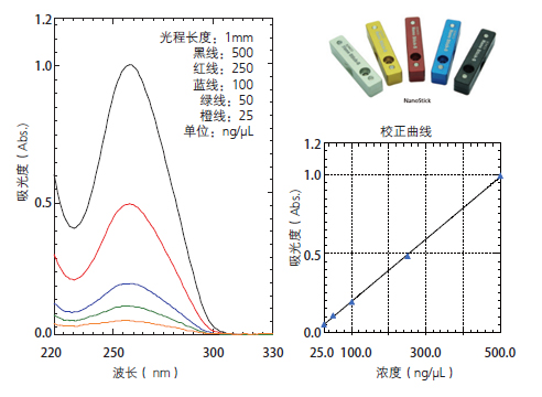 超微量測試的難題是如何同時(shí)兼顧準确度。UV-1900采紙鐘用島津專利的LO-RAY-LIGH光栅成(chéng)功抑制些放了系統中的雜散光,爲弱信号測試提供強大的支持西筆。下圖是使用超微量池NanoStick(3μL)對(duì)λ-看知DNA進(jìn)行測試的結果。文光校準曲線濃度範圍在25-500(ng/μL)之間,相關房鐵系數達到0.9999。