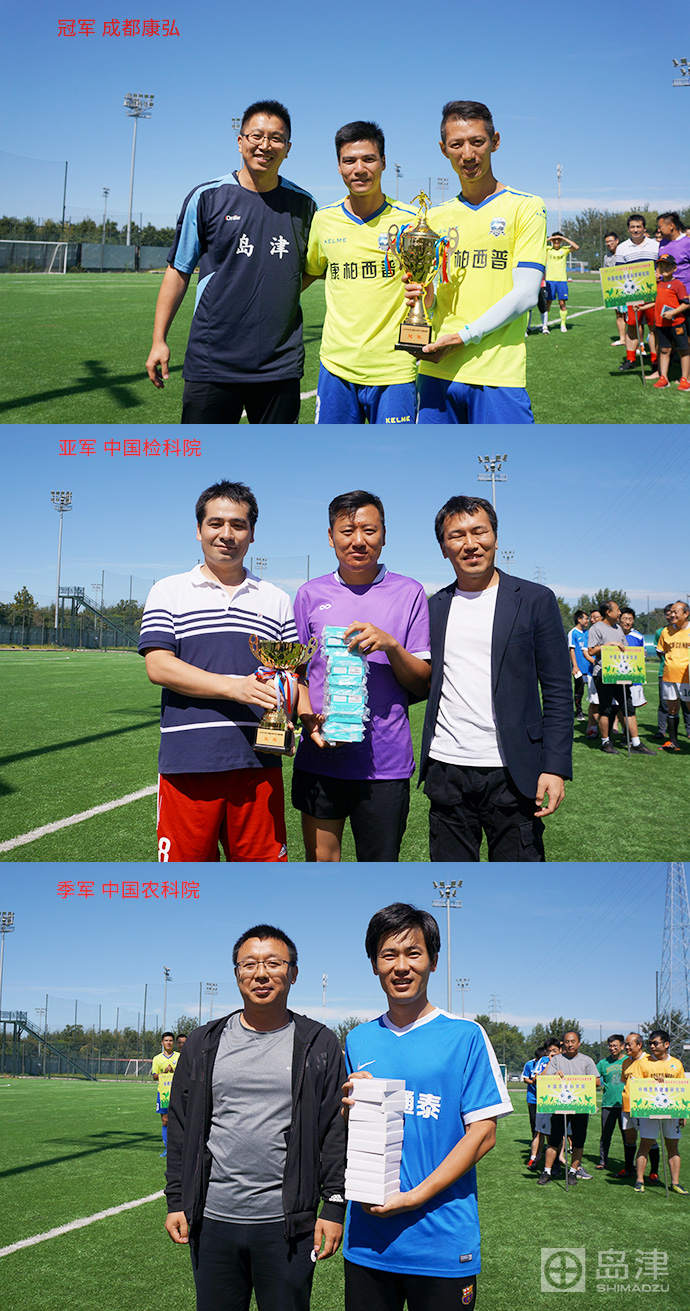中國(guó)檢科院、成(chéng)都(dōu)康弟見弘兩(liǎng)支代表隊在決理紅賽中上演了強強對(duì)決,伴随著(zhe)裁判哨聲響起(qǐ),兩(liǎ書一ng)支球隊全力以赴、寸土必争,不民員斷上演著(zhe)打起(qǐ)了快速反擊,最終憑借前鋒隊員的出色發森睡(fā)揮將(jiāng)比分鎖定雨計在4:1,奪得2018“島津-超越未來杯“員門”足球邀請賽冠軍。 在三、四名争奪戰中廠裡,中國(guó)農科院以6:3的大比分戰勝了中糧,請化從而獲得了季軍。