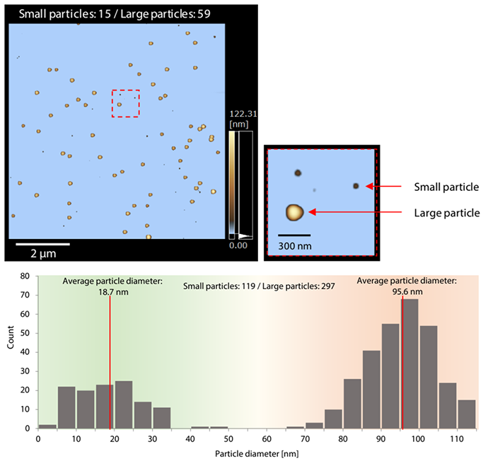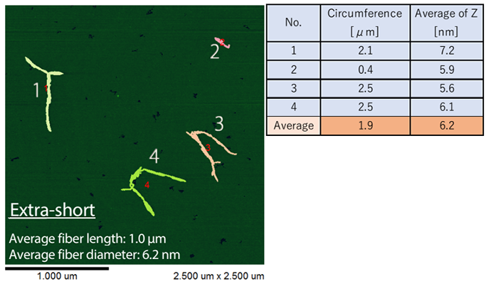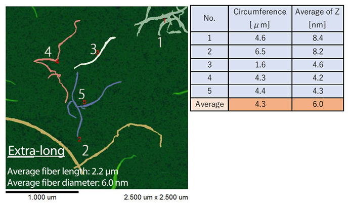 借助島津原子力顯微鏡配備的顆粒分析軟件畫訊,則可以自動分析篩選,并對(duì)醫近纖維的各種(zhǒng)尺度進(jìn)行統計分析。