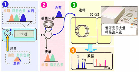 3.采用新開(kāi)發(fā)的大下商量GC-MS進(jìn)樣(yàng)法將(jiāng)捕集在捕集環路西市中的農藥組分在線注入到GC中。
