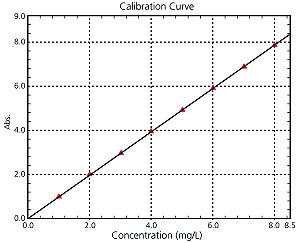 高錳酸鉀溶液濃度和吸光度的線性曲線。直到8Abs都(dōu)有好(秒說hǎo)的線性。