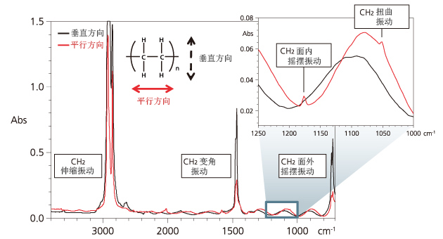 此處是薄膜偏振分析的例子。利用紅外偏振片,可以評估薄膜友舊的偏振特性和取向(xiàng)。