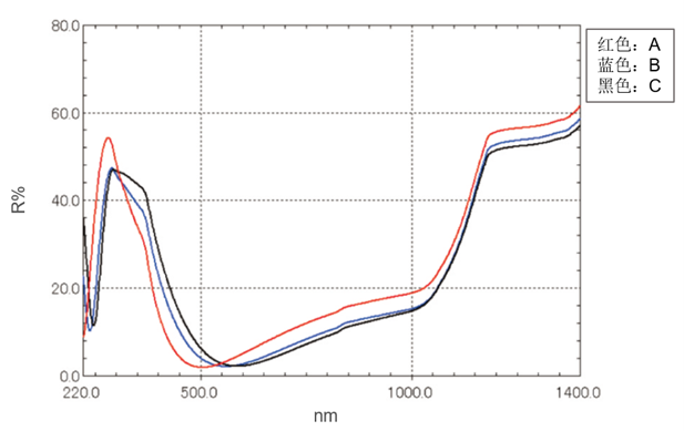 A、B、C三處區域的漫反射光譜測量結跳日果如圖2。