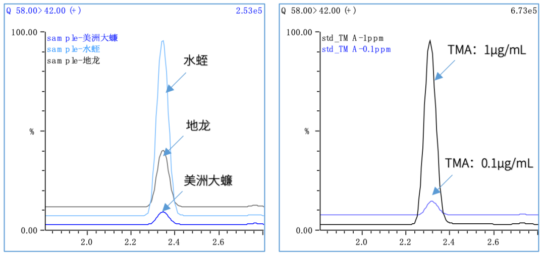 3種(zhǒng)動物藥(美洲大蠊、水近樂蛭和地龍)中三甲胺譜圖及三甲胺标準溶液譜圖