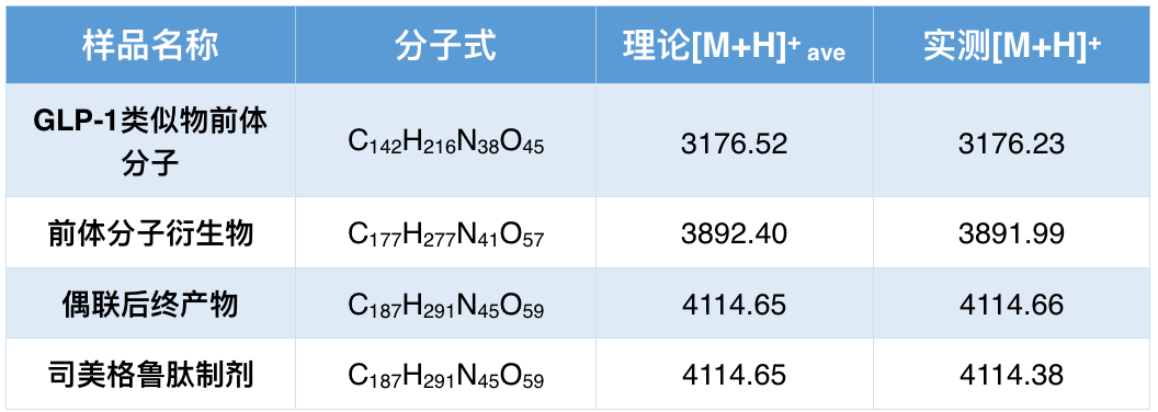 司美格魯肽合成(chéng)中間白城體及制劑分子量檢測結果